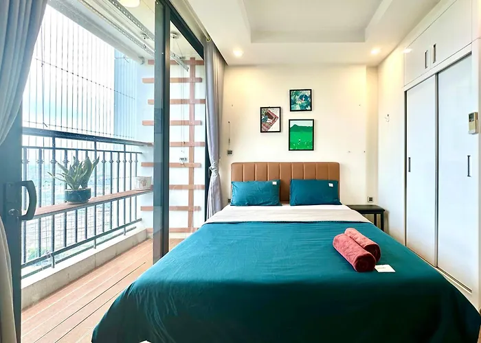W 1-pokojowym Delux Studio Near Keangnam In City Centre Goście mają do dyspozycji patio, balkon i garderobę z klimatyzacją. Aby zapewnić Ci komfort, obiekt noclegowy oferuje wannę spa, kabinę prysznicową walk-in i oddzielną toaletę. Ponadto w łazience zapewniono suszarka do włosów, szlafroki i ręczniki.